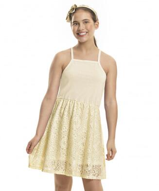 Vestido em malha de algodão e renda