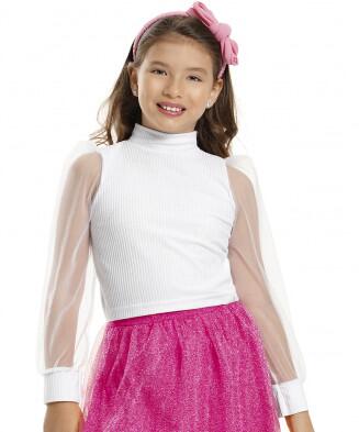 Blusa em malha ribana e tule