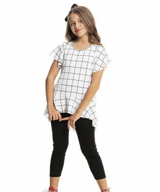 Conjunto 2 peças (Blusa em malha de algodão e saia em malha de algodão e tule)