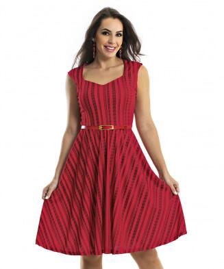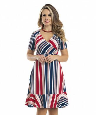 Vestido em helanca e malha listrada em poliéster
