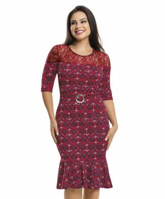 Vestido em jersey confort acetinado e renda