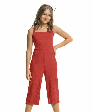Macacão pantacourt em malha ribana