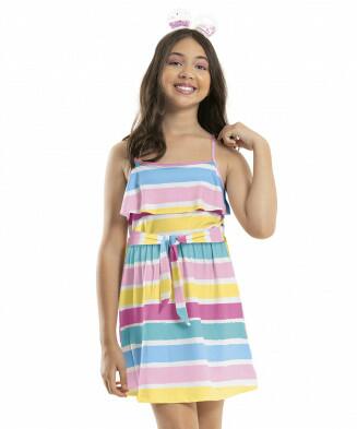 Vestido em malha listrada com lurex e elastano