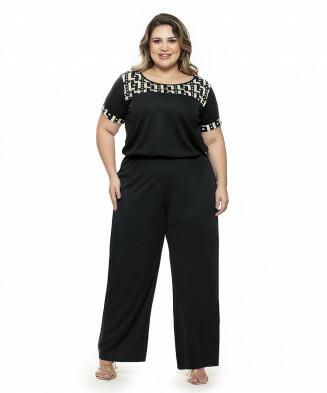 Macacão em helanca e jersey acetinado