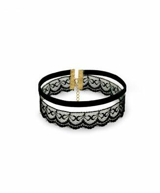 Gargantilha Choker Luxor em camurça e renda com detalhes Folheados a ouro
