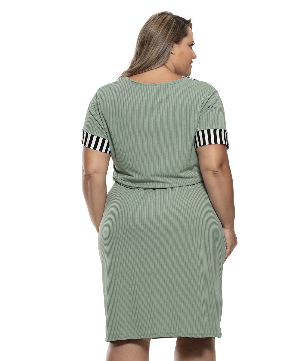 Vestido em malha ribana e poliviscose com elastano
